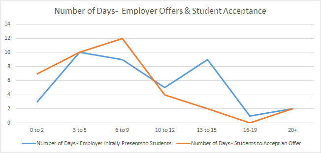 Figure 3. (Average number of days employers provide for consideration vs. Average number of days for student response)